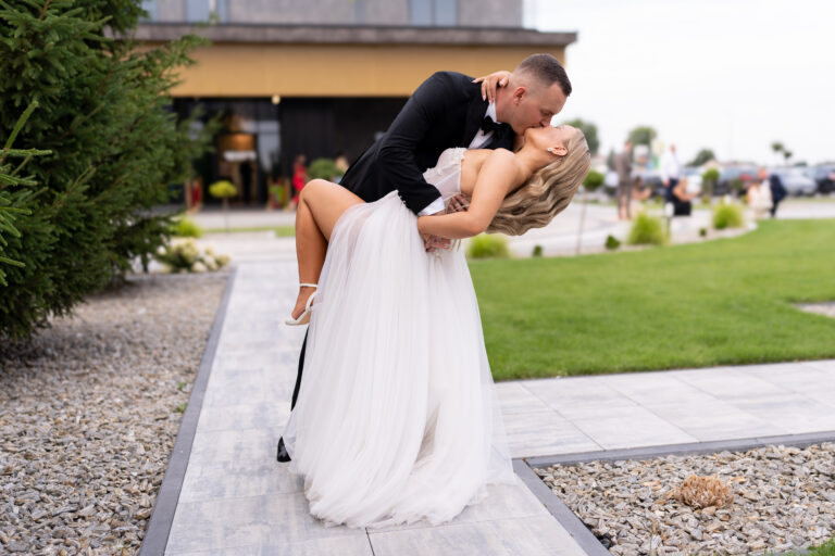 – krótka sesja zdjęciowa w plenerze podczas przyjęcia weselnego